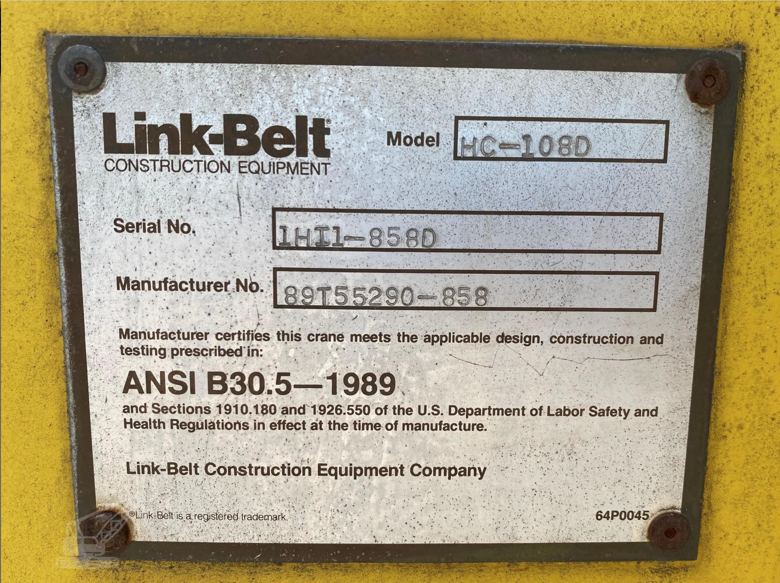 GM 4-71N 4 Cylinder Diesel Engine (Upper) - AS PER LINK-BELT SPECIFICATIONS & SUBJECT TO FINAL CONFIRMATION,