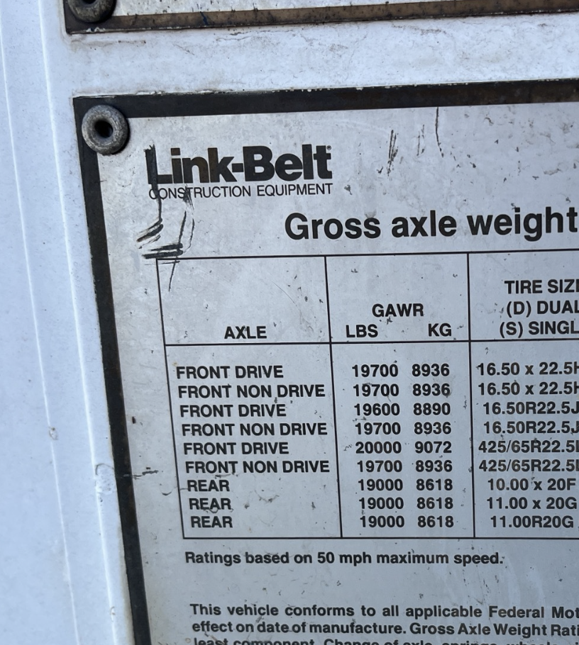 Carrier: 8’ Wide Link-Belt Carrier With 6 x 4 Drive Mileage: 76,157 as of 10.2024