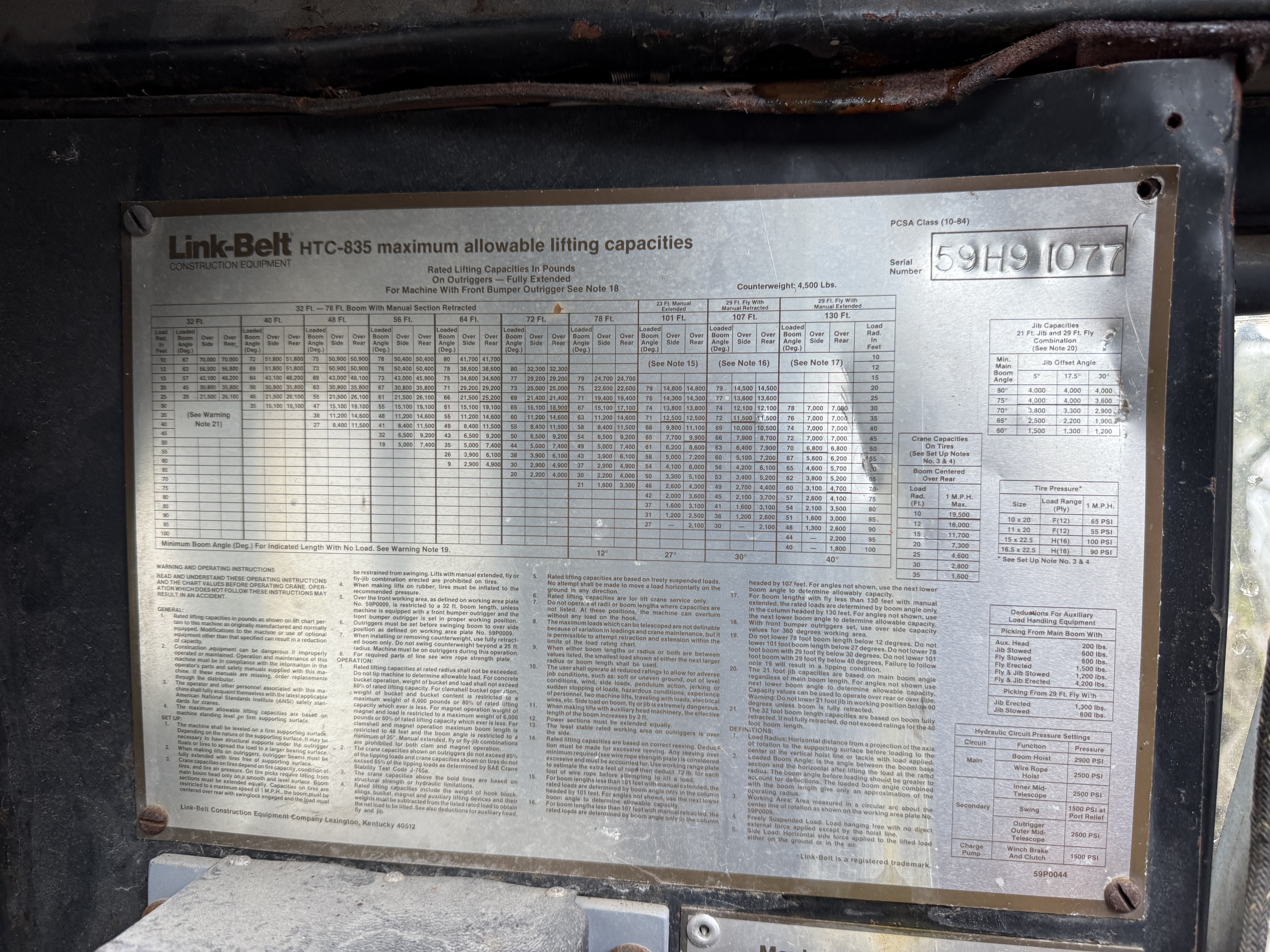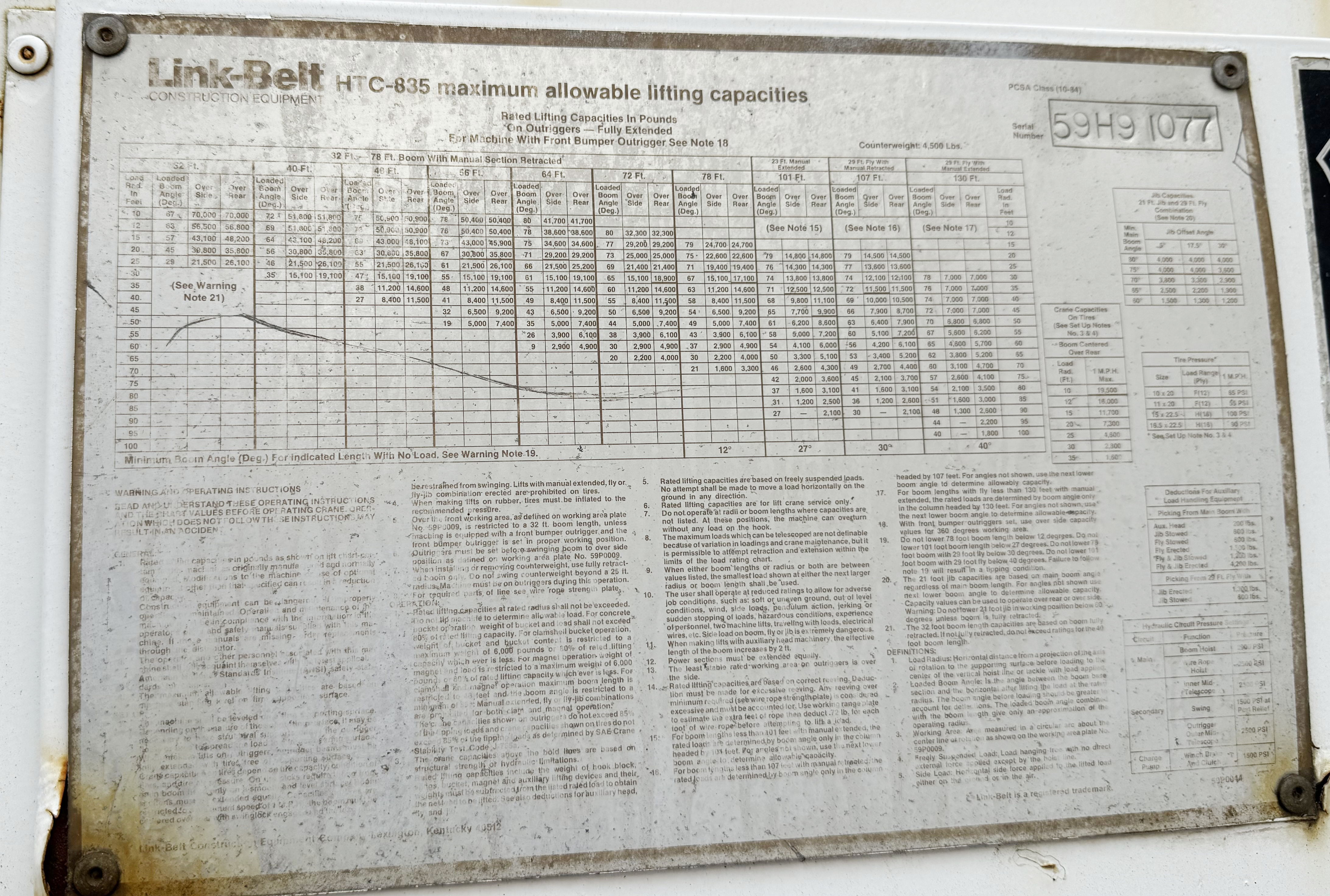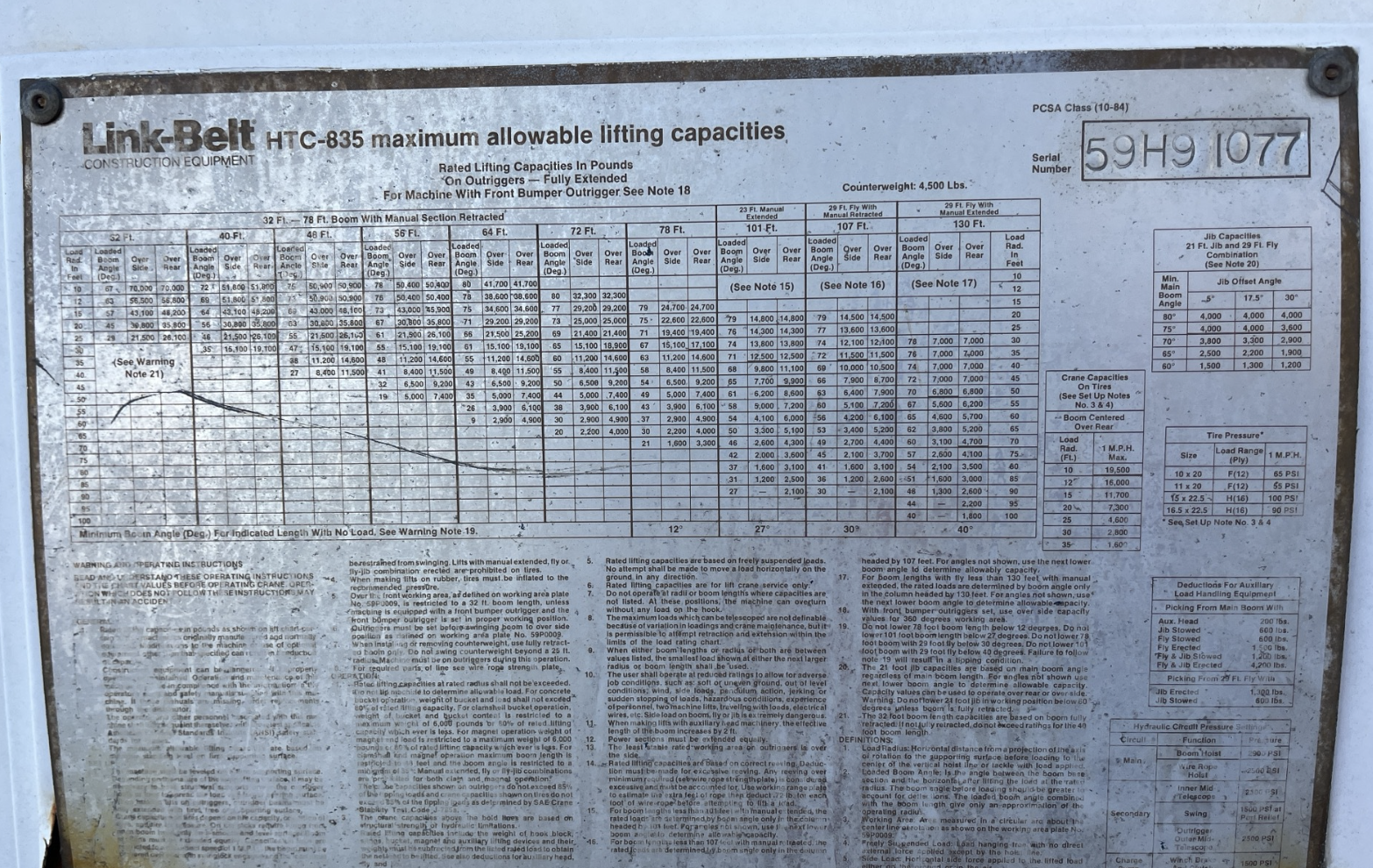 Jib: 29’ Swing-away Fly (Jib) Jib Length: 29'