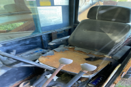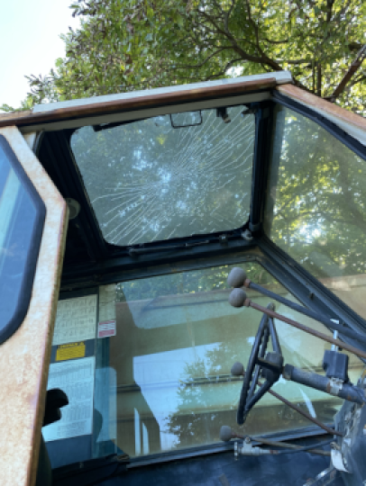 • Operator's seat needs to be recovered or replaced and Top glass in cab is cracked,