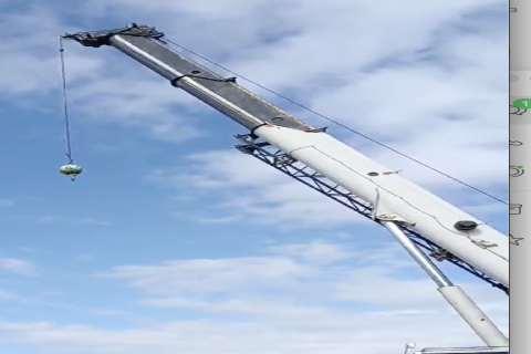 31'-55' Bi-Fold two piece lattice Fly (Jib), stowable, off-settable to 2 ̊, 25 ̊, and 45 ̊,