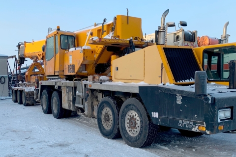 • MAKE BEST OFFER "AS IS WHERE IS" WITH - T3 Boom Is Bent, and the seller has sold the Boom Tip. So only the base, T1, T2 boom sections remain on the crane.