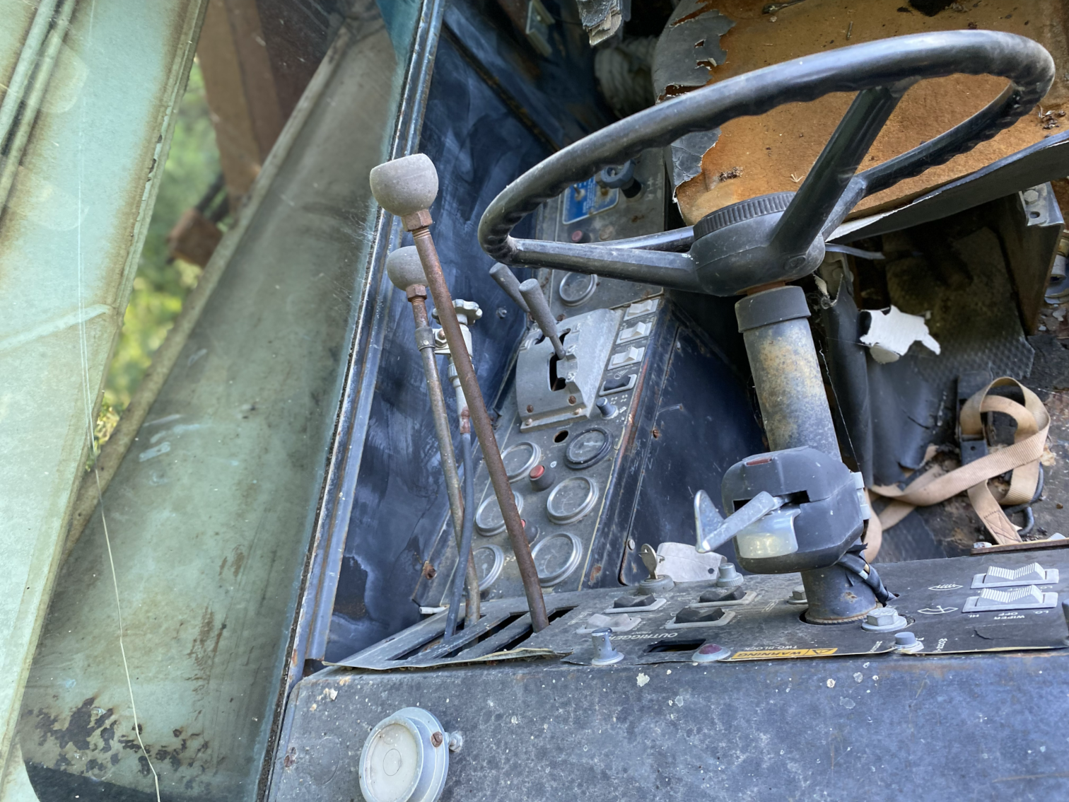 • Operator's seat needs to be recovered or replaced and Top glass in cab is cracked,